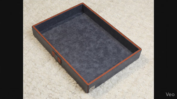Handcrafted by skilled artisans, this tray features a water-resistant premium vegan leather exterior that allows it to transition seamlessly from the bedroom to the bathroom. Its rigid structure and luxe finish make it the perfect stage for your daily essentials, elevating even the simplest items into a display of elegance.