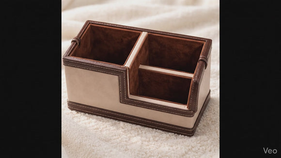 Hand-stitched from premium vegan leather, this structured holder features a divided interior that allows you to categorize your essentials. It is far too beautiful to be hidden in an office. Use it to elevate your dining table by organizing cutlery, or place it on your vanity to separate eye brushes from face brushes. The rich texture and sturdy build make it a luxurious alternative to plastic cups and wire mesh holders.